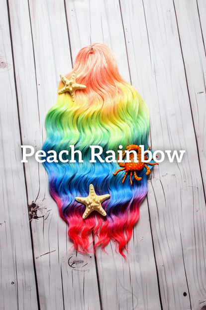 Full set of 50 DE Brushable curls in the much sought-after "glitch" or rainbow colours( 20 rainbow, 30 natural shade ). These sets are hand crocheted with a dreaded centre of 6 to 8 inches. The dreadlock can either be centred or offset to one side. This set is 24 inches long and can be worn up to 6 weeks for a temporary style and can be reused. This hair can be left to dread up or can be brushed daily for a beautiful, wavy look.